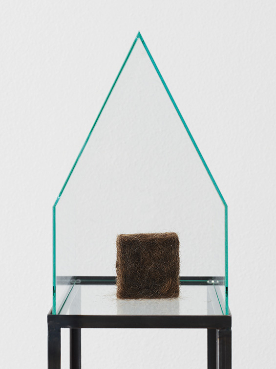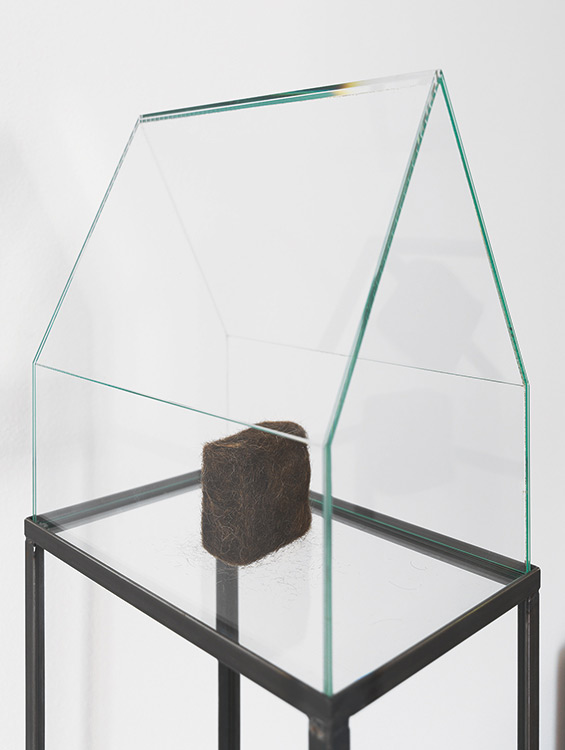 Stammhaar setzt sich aus einem hausförmigen, gläsernen Schrein auf hohem, metallenem Stand und einem, im Inneren des Glashauses liegenden, quaderförmigen Filzobjekt aus Menschenhaar zusammen. Das fragil, doch schützenswert aufgebahrte Filzstück besteht aus Haaren aller ihrer lebenden Verwandten.