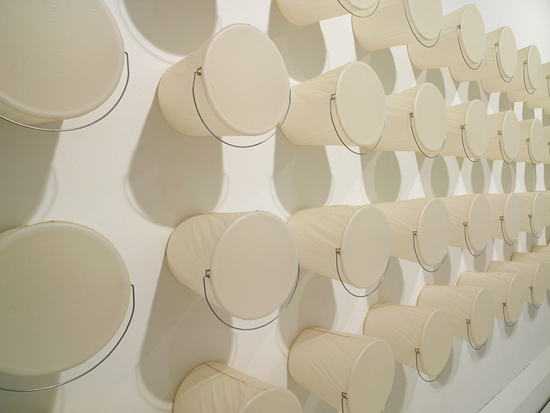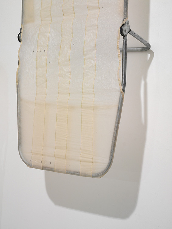 Das grösste und vielleicht empfindsamste Organ des Menschen ist die Haut. Sie ist die Grenze zwischen körperlichem Innenraum und Aussenwelt. Gleichermassen abschliessende Umhüllung und durchlässige Membran, kommuniziert sie zwischen dem Innen und Aussen. Indem Barbara Geyer Gegenstände mit Naturin-Wursthaut umhüllt, lotet sie Raumbeziehungen aus. Dabei geht es einerseits um das Verhältnis zwischen Gegenstand und Benutzer im räumlichen Kontext, andererseits um den Gegenstandsraum selbst.