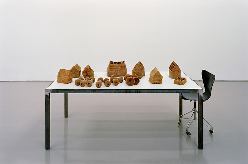 So wie sich hier das Werk sehr unmittelbar mit dem Leiblichen der Künstlerin verknüpft, hat auch die Brotarbeit eine biografische und gewissermassen biomorphe Konnotation: Der Akt des Brotkauens an sich vermittelt Innigkeit und Intimität; mit ihm verbinden sich Gedanken und Empfindungen, die um urmythische Werte kreisen, um die Schaffung von Behausung, um Schutz für Leib und Seele, um Lebenserhaltung und Authentizität; der Begriff der Einverleibung bzw. „Einver-laib-ung“ drängt sich auf. Fokussiert auf den Mund der Künstlerin, dokumentiert ein Video überdimensional und ausschnitthaft den Vorgang des Kauens.